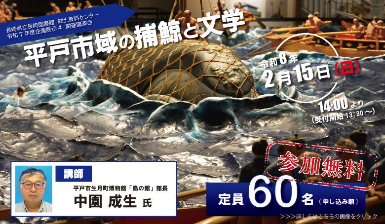 - 令和7年度 郷土資料センター企画展示4 「平戸市ゆかりの資料展 平戸市ゆかりの文学と西海捕鯨」のご案内